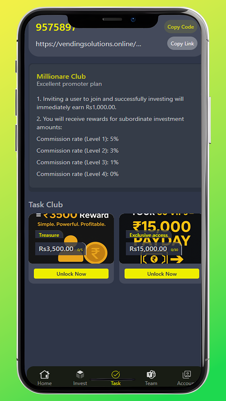 Invite your friends and earn a commission for every signup. The more friends you bring, the bigger your earnings become. Share your referral link and grow your income effortlessly.