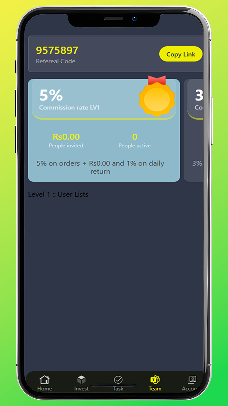 Invite your friends and earn a commission for every signup. The more friends you bring, the bigger your earnings become. Share your referral link and grow your income effortlessly.